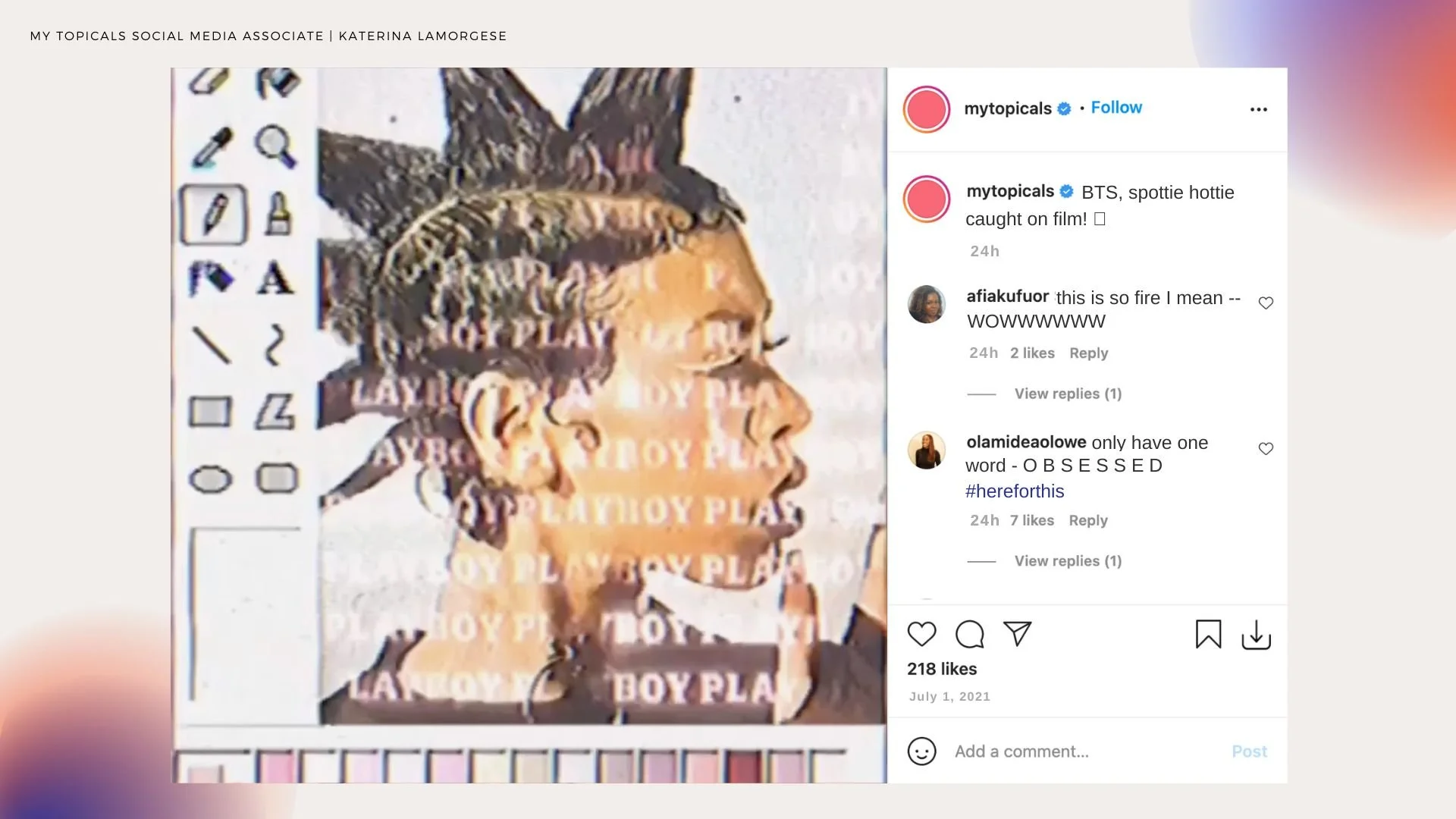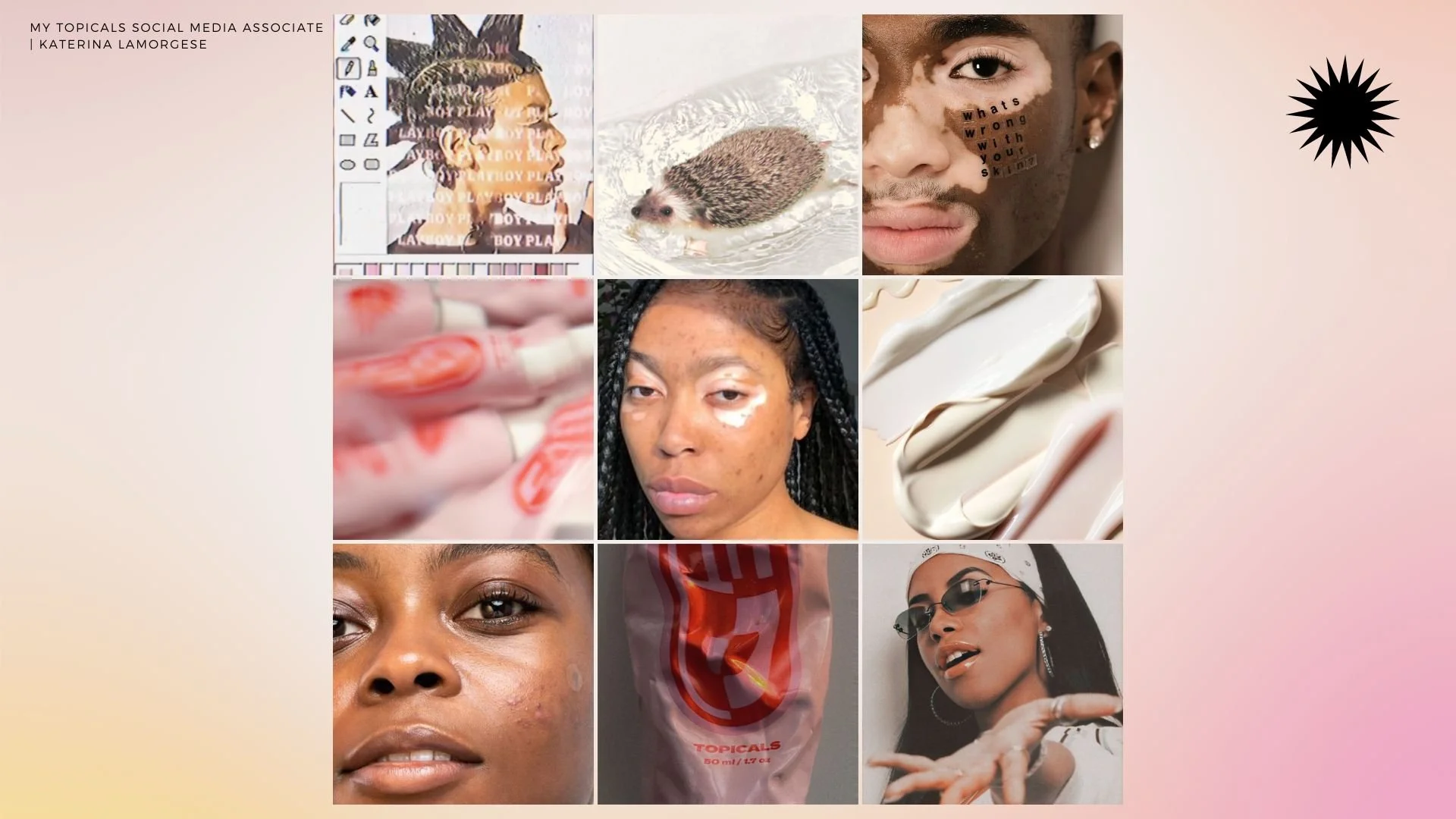 TOPICALSProject guidelines: Source photos for a 9-grid mockup to showcase the direction TOPICALS feed should be taken based on the below inspiration + guidelines. Themes include edgy, approachable, raw content, and inclusivity.